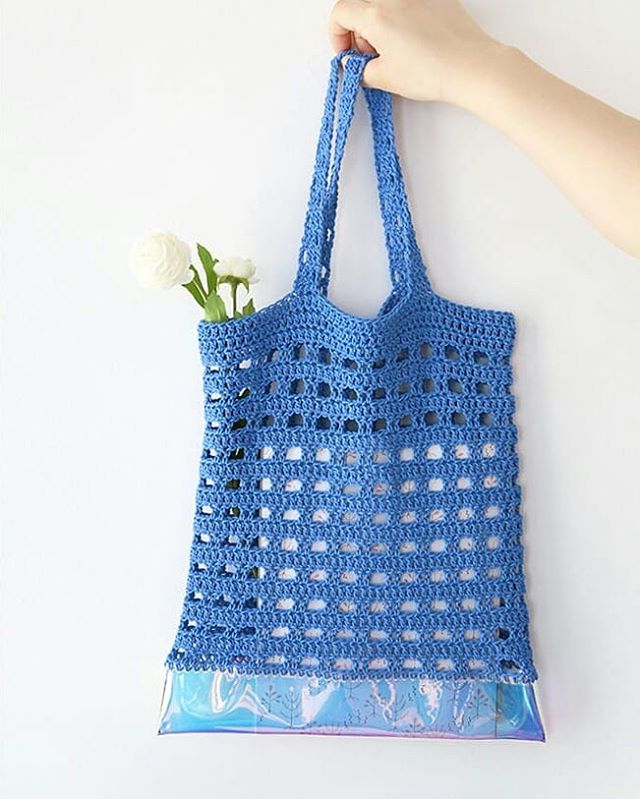 #니뜨 #뜨개질 #뜨개가방 #여름가방 #그물백 #네트백 #모칠라 #투명백 #투명가방 #가방뜨기 #바다 #블루 #데님블루 #토트백 #에코백 #뜨개에코백