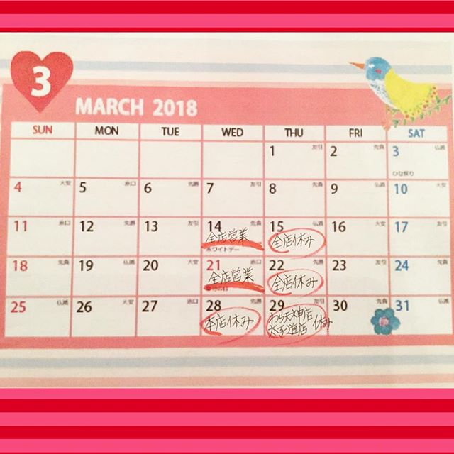 なお、2/15(木)が全店定休日とさせて頂きます‼️