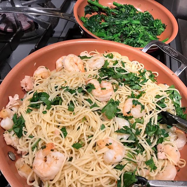 - - - I wanted to chop up the broccoli rabe and add it to the spaghetti to make it pretty. But “someone” doesn’t like broccoli rabe, so I had to add a mess of parsley instead. ????
