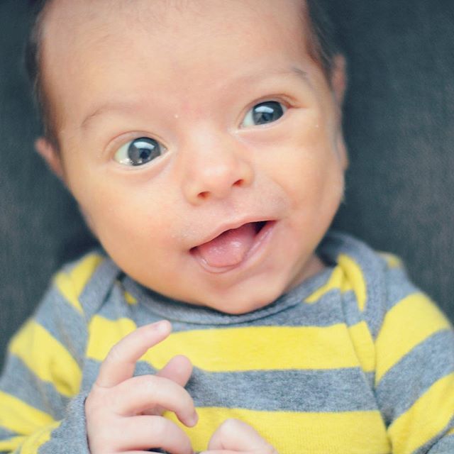 6 weeks old today starting to show so much more expression—and even a few little smiles! Oh how we love you, Hudson! #lovethatlittledimple ????
