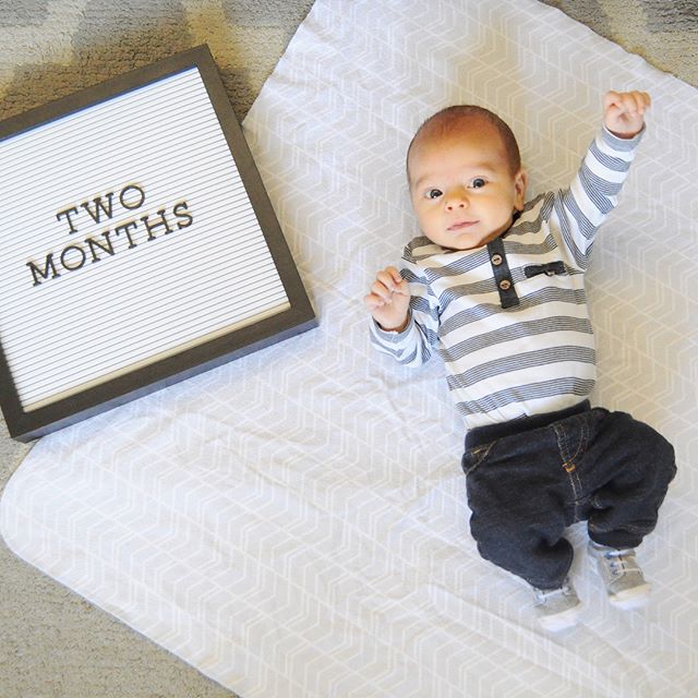 This sweet boy is 2 months old today. (How??!! ????) Crazy to see how much he’s changed in the last month! He’s definitely filling out more—he’s grown out of all his preemie clothes and weighs 8 lbs 6 oz. (Still super teeny, but up 2 lbs in the last month