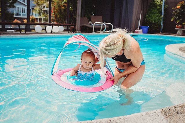 My little ???? is in the swim with her new #babyspringfloat {super cute swim blog link in bio} #ad We are celebrating National Learn to Swim Day with @swimways and getting in the swim like Mama who swam in College! Splash! ????