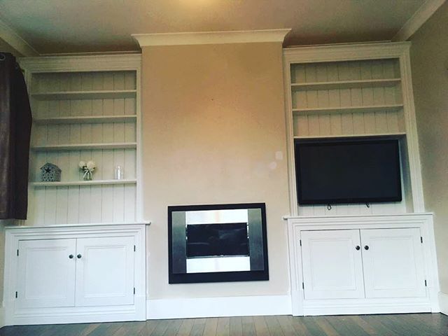 Bespoke double alcove shelving with tv fitting nicely inside ????