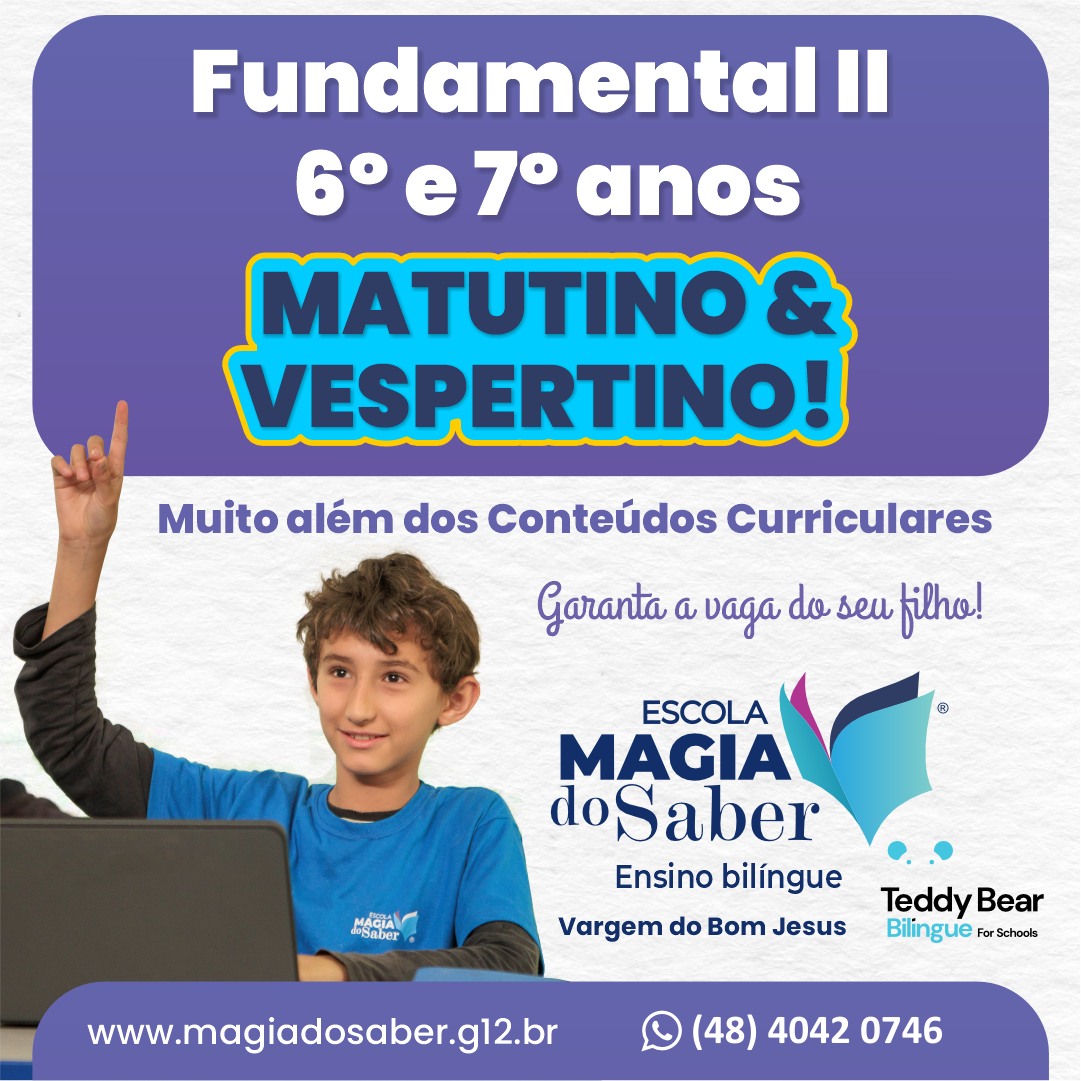 Estamos com matrículas abertas para o 6° e 7° ano, com turmas nos períodos matutino e vespertino .