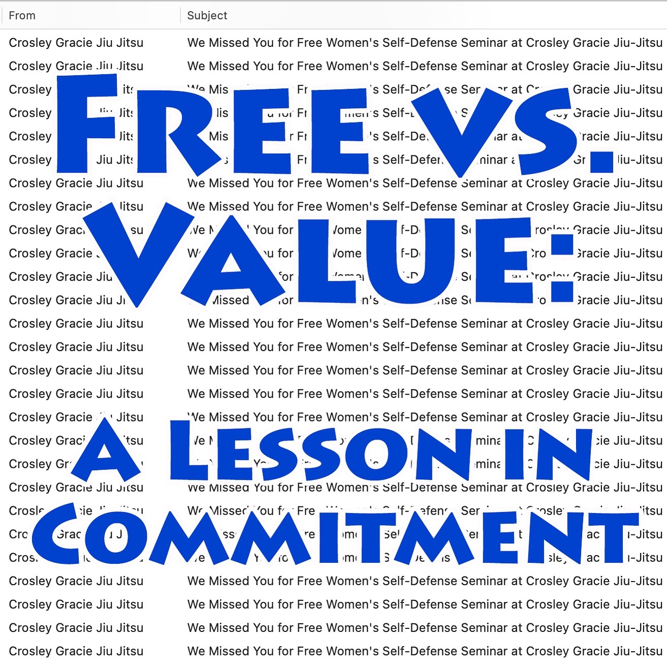An unfortunate reality in both society and our industry is that people often fail to value opportunities that are free of charge. At our Annual Free Women’s Self-Defense Seminar last week, we had 98 registrations, but 27 participants—nearly 30%—were no-sh