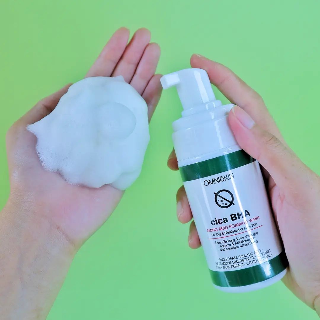Biar ritual cuci muka jadi lebih fun dan enjoyable, coba deh pakai Omniskin Cica BHA Amino Acid Foaming Wash!