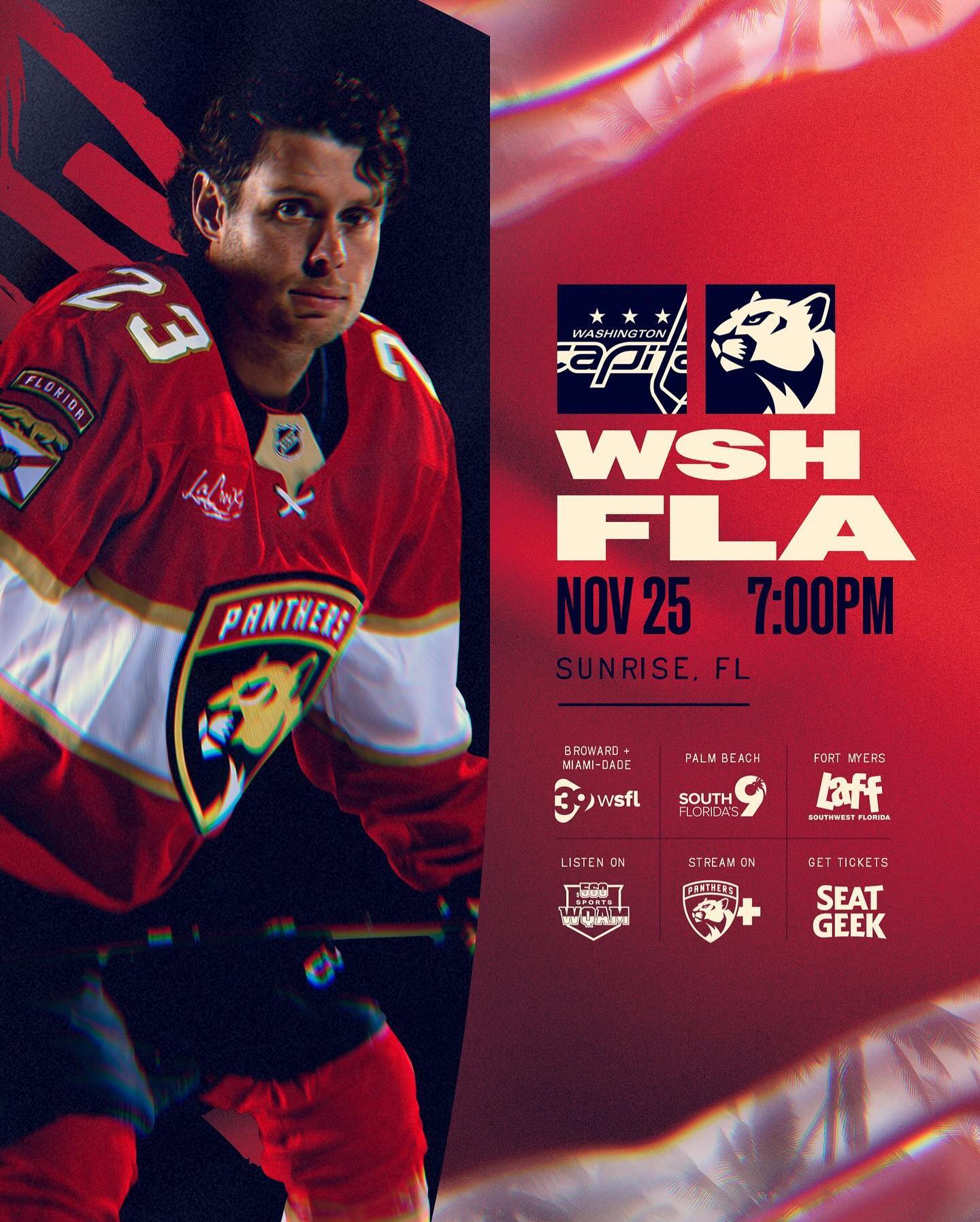 The Panthers look to end the losing streak tonight facing the Washington Capitals at 7:00 pm.