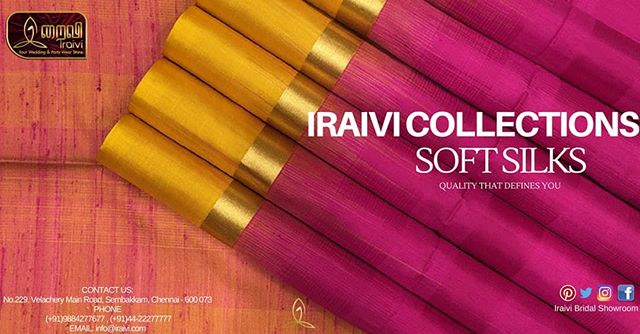 IRAIVI COLLECTIONS SOFT SILKS Quality that defines you ❤️ #Iraivi #softsilk #kanchipuram #iraivibridalshowroom Visit our store @iraivibridalshowroom Address No.229, Velachery Main Road, Sembakkam, Chennai- 600073 Contact us: 91 9884277677 , 044-222777