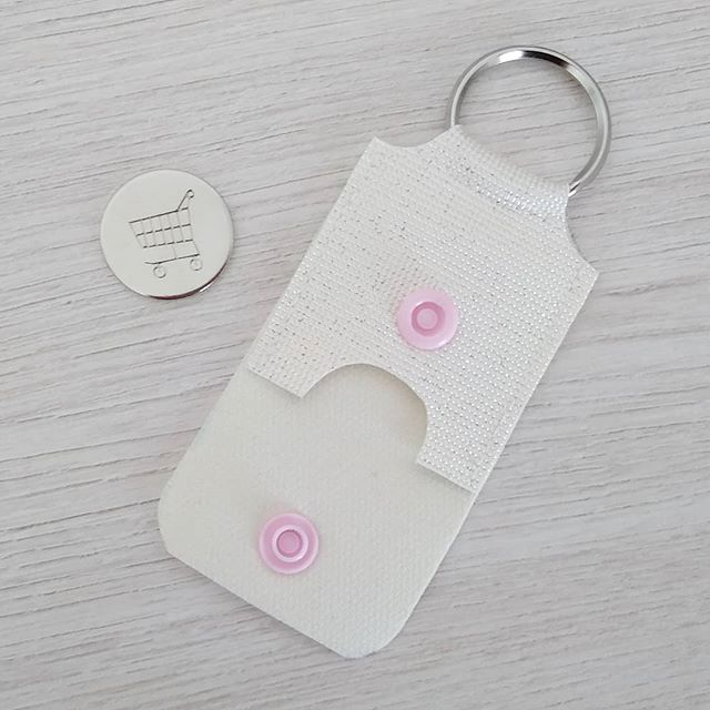 Et voici ce que donne le porte-jeton ouvert. Un DIY d'une simplicité absolue mais vraiment pratique proposé par @vinydiy ???? J'ai réalisé le mien dans une chute de simili cuir blanc à paillettes avec bouton-pression rose pour un résultat absolument girly