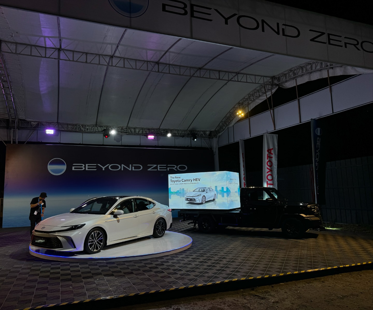 The New Camry + the Next Gen Tamaraw with LED box + Beyond Zero + The Outdoor Tent. This photo = just the tip of the PIMS 2024 iceberg.