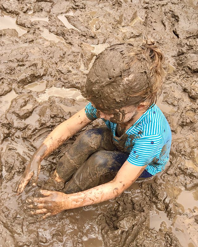 Rowan: "I think I'm the muddiest one here!" And she *wasn't*, even. ???? Mud Day at the Leslie Science Center, hosted by some of my play heroes from Green Apple Garden Playschool.