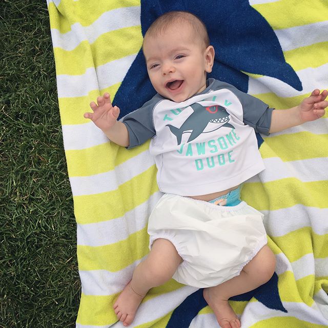 Giant swim diaper on a teeny baby! ???? Last day of swimming lessons for the big boys (they did great!) swimming with cousins afterwards today to celebrate—so fun. (And no one drowned or got lost! ????????) Doing things with all four boys is getting easi