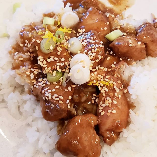 Instant Pot Orange Chicken over steamed rice... mmmmm so good! ????