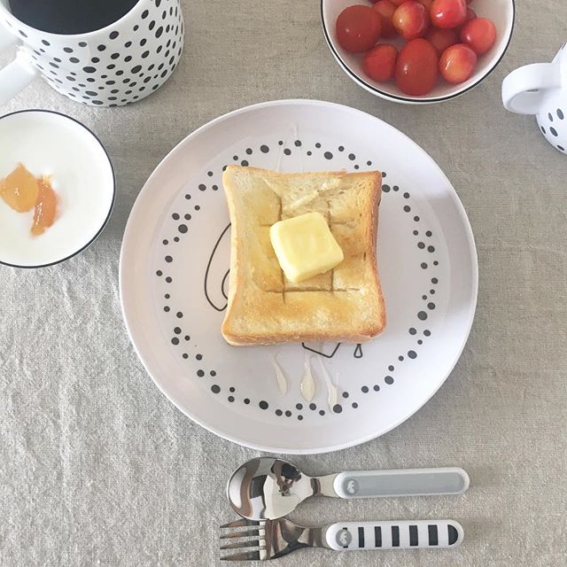 Done by DeerのベビープレートとASAのMUGAのマグがピッタリきました。ドット好き、モノトーン好きのママさんにおすすめしたい組み合わせです。 ・ ーーーーーーーーーーーーーー ▶︎詳細はプロフィールのリンクからご覧ください。