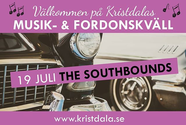 Välkommen på musik- fordonskväll torsdag den 19 juli på torget i Kristdala! The Southbounds står för musikunderhållningen och spelar både egna låtar och covers. Vi börjar kl. 18. Hoppborg för alla barn! Pst. Ta gärna med dig en stol eller filt att sitta