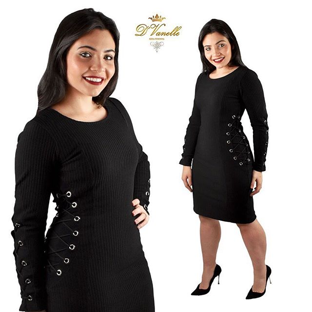 Vestido REF:8070 Confeccionado em malha canelada encorpada, com recortes na cintura e nas mangas com ilhós e cordões. Um pretinho de arrasar!! Disponível em nossa lija virtual: www.dvanelle.com.br #euvistodvanelle #vestidopreto #vestidotubinho #ccb #moda