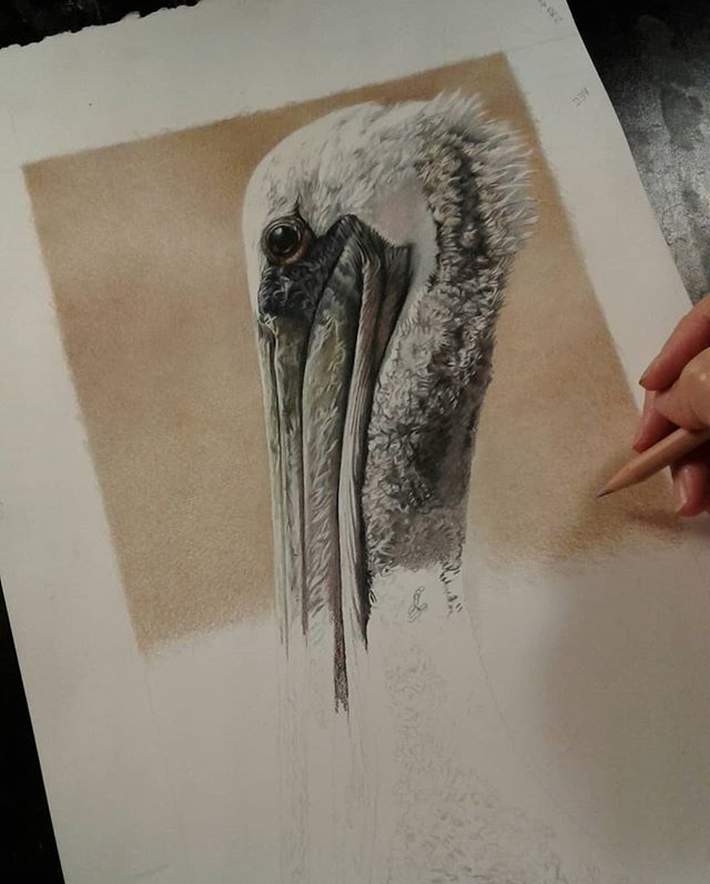 What I love about drawing Nigel is that he has sooo many fun colors in him...sea greens, blues, burgundy, and mauve besides the greys!! His furry neck has been challenging but fun!!!