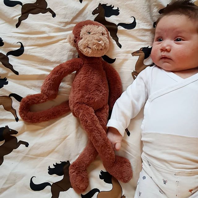 Nya mjukdjur hittar ni nu i både butik och i webbshoppen. Här är Vera och hennes nya kompis Pitterpat Monkey. #lillalivolek #jellycat #mjukdjur
