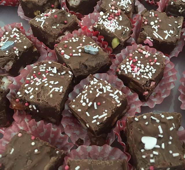 Wat lekkers meegenomen naar het Gastenhuis. Rocky Road fudge met gemengde nootjes, gedroogd fruit en mini marshmallows. . #traktatie #rockyroad #rockyroadfudge #chocolade #gecondenseerdemelk #noten #walnoten #pistachenoten #pinda #marshmallow #abrikozen #