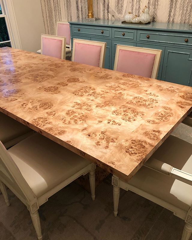This gorgeous custom burl table has found it’s home! ????. It is truly a work of art!!! Thank you @theceh, she’s a stunner!!!! (Please forgive the crummy phone pics, it was just too good to not share right away!) This space is almost complete. #mebeckdesi