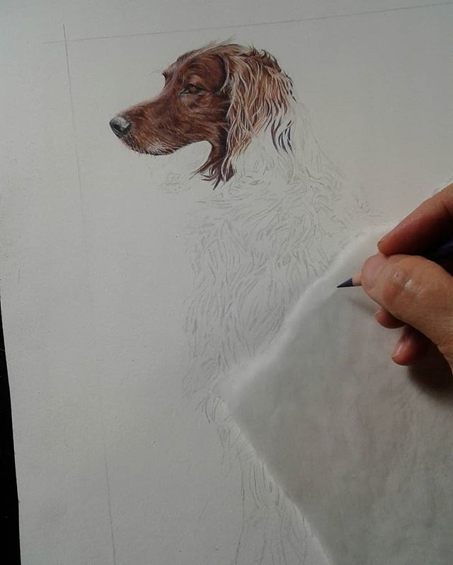 The very start of a new commission of an Irish Setter named Dmitry. May the road rise up to meet me!!!☘????☘