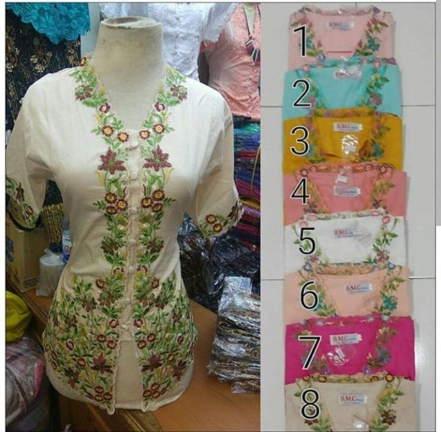 165.000 Kebaya bordir bahan katun Lengan 3/4 M. 94cm L. 96cm XL 100cm 2L. 104cm