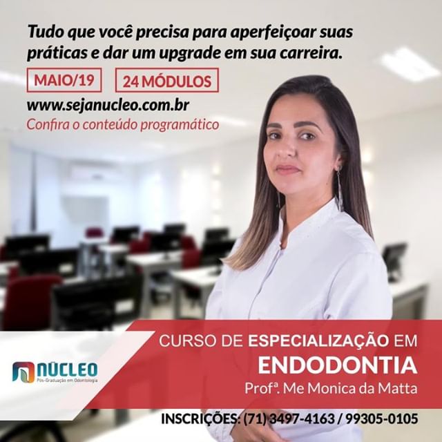 Prepare-se! Em Março de 2019 iniciaremos mais uma turma de Especialização em Endodontia com a Prof. Me Monica da Matta.