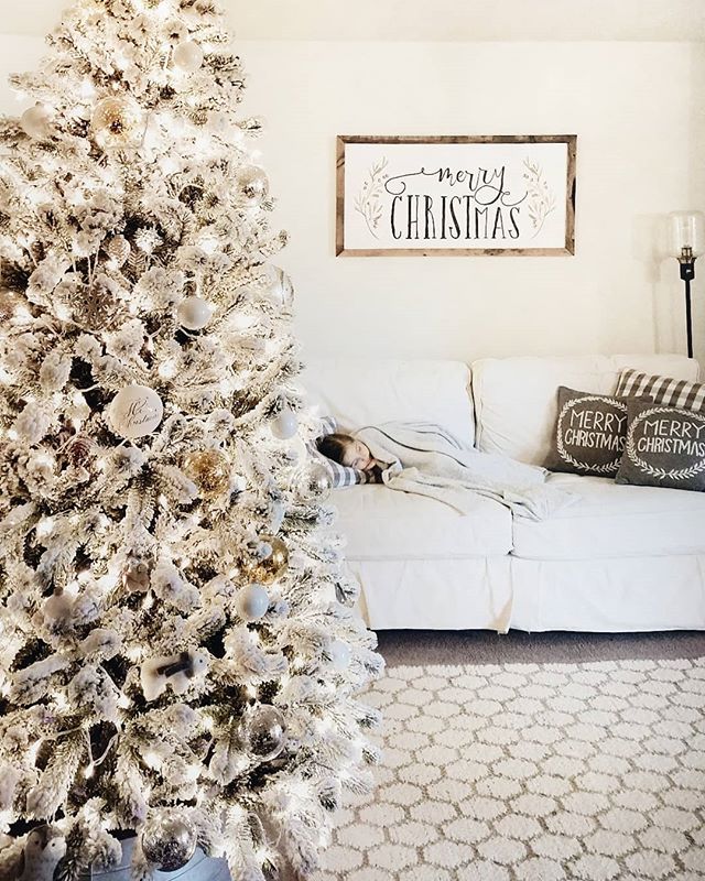 Our gorgeous flocked Christmas tree is from the amazing @kingofchristmas (beautiful in photos, even prettier in real life), and naptime was courtesy of a 5am wake up. ???? #kingofchristmas