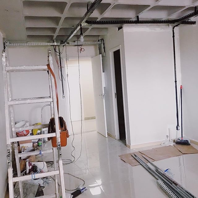 Muito em breve, essa bagunça vai dar espaço à muita criatividade. ???? E, claro, as cores serão um ponto chave na decor do ambiente (que vai ser composta por outros elementos - vocês vão acompanhar aqui). ✨ As paredes serão o branco gelo, pois queremos da