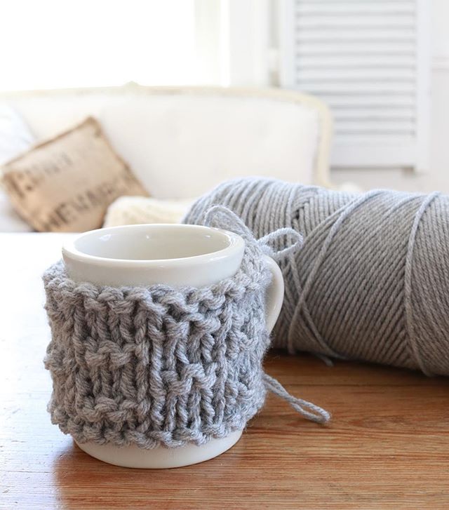 Keep your coffee warm - knit this cozy chunky mug warmer! The pattern is easy and free - up on the blog today. #wintercrafts #mugwarmer #knittersofinstagram #farmhousestyle