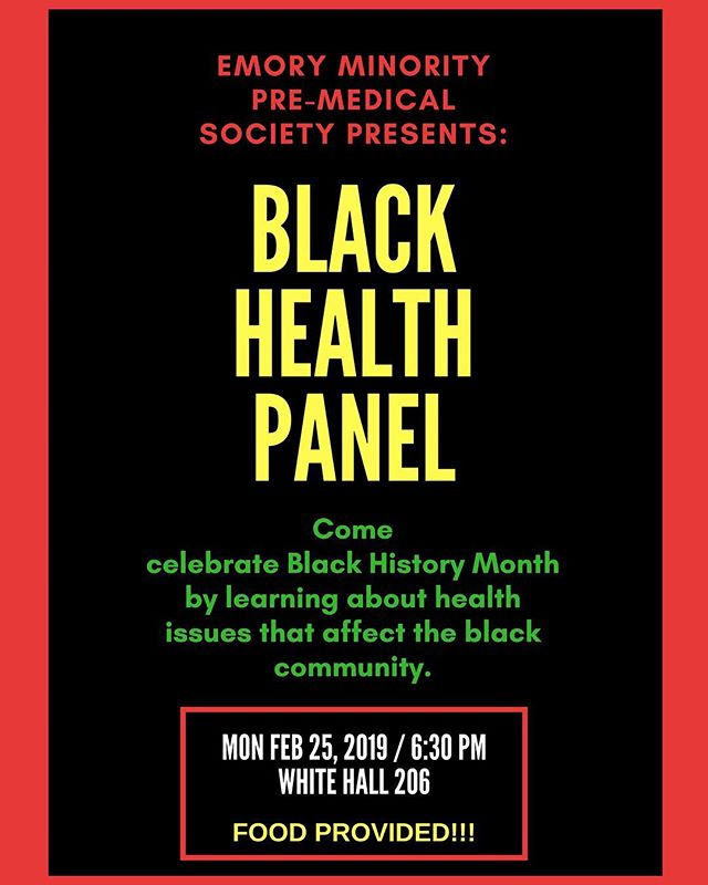 Come out to Minority Pre-Medical Society's GBM on Monday, February 25th at 6:30 pm in White Hall 206. We will have a panel of Black health professionals and students. We will discuss health disparities, the importance of diversity in medicine and other re