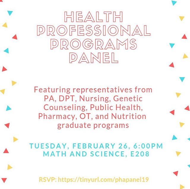 Don’t miss this chance to hear from admissions representatives and professionals from some of the most popular healthcare professions! RSVP: https://tinyurl.com/phapanel19 (or click the link in bio)