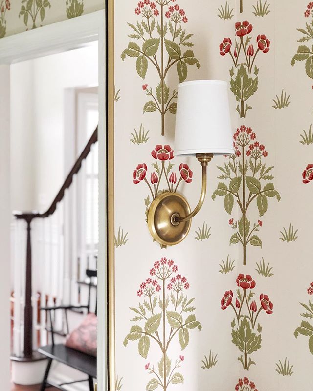 this historically inspired wallpaper paired with our Spencer Sconce in Antique Brass is so happy in this client’s powder room! ????????