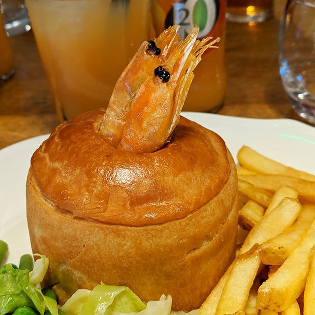 Posh Stargazy Pie @the_admiralty_pub. I used to come in this building when I was a child as it was a branch of NatWest which my mum worked at. I was terrified of the revolving door.