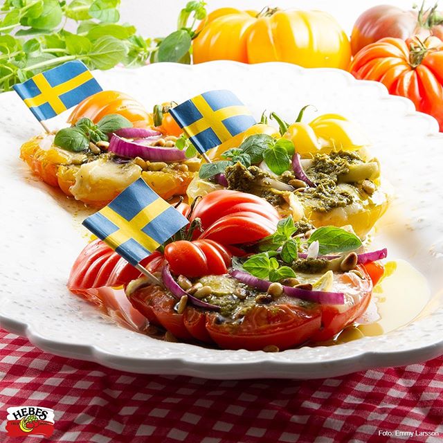 Lika färgglatt som finalen i Eurovison Song Contest imorgon blir det med dessa supersmarriga, bakade Bifftomater med brie från