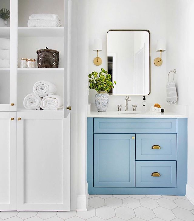 ???? we are looking forward to a holiday weekend at home that includes a birthday celebration for a special 4 year old. So, let the house cleaning begin! This amazing bathroom designed by @samanthasteininteriors (and featuring our brass Fillmore Sconces!