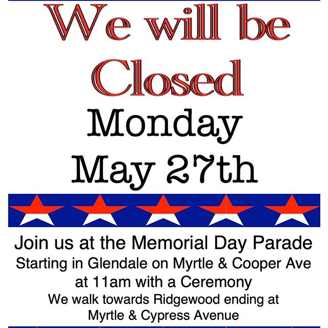 Cook’s Crafts will be closed on Memorial Day. We will be honoring our local veterans at the Glendale - Ridgewood Parade. Have a safe weekend.