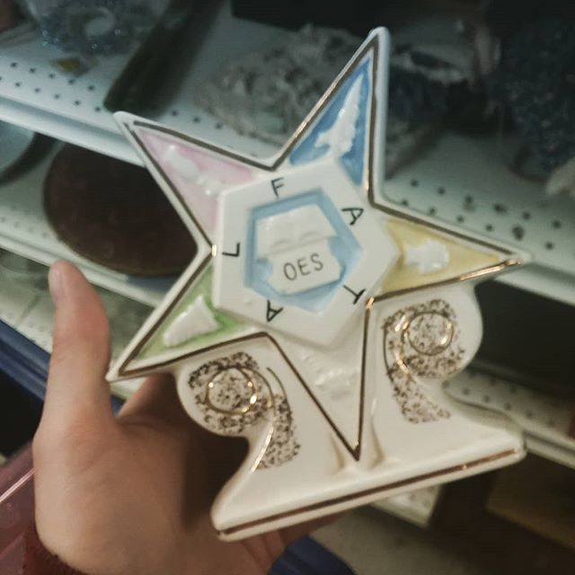 I bought this pastel ceramic masonic pentagram vase a few weeks back at goodwill. It was a very good find ????