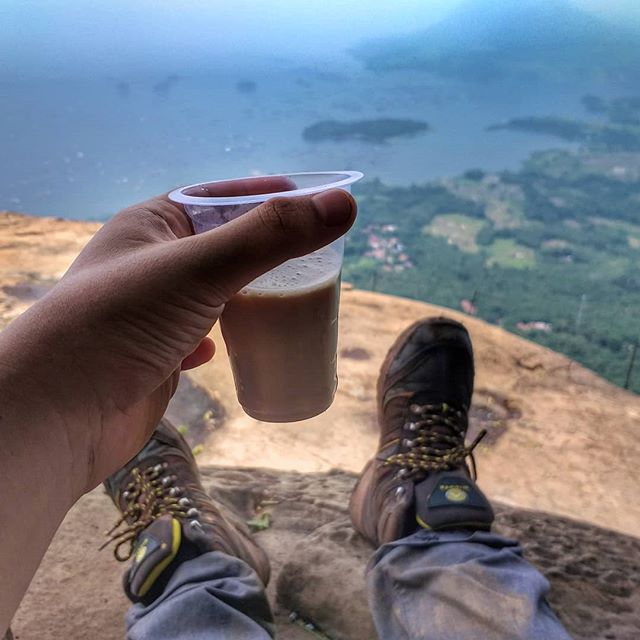 Bahagia murah ala pendaki gunung: minum kopi hangat di puncak gunung yang dingin. . . . (Masih