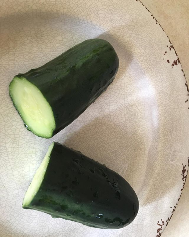 First cucumber of the season and of course I had to eat it #farm life #farm #farmhouse #cucumbers #lunch #eatingood