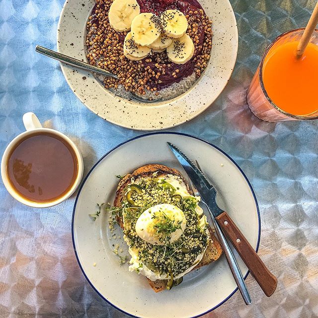 The best avocado toast award goes to @cafepomflora Thanks for the thick piece of sourdough toast layered with cream cheese, avocado, chermoula dressing (parsley, lemon, cumin), pickled jalapeños, hemp seeds, micro watercress and an egg on top. My friend a