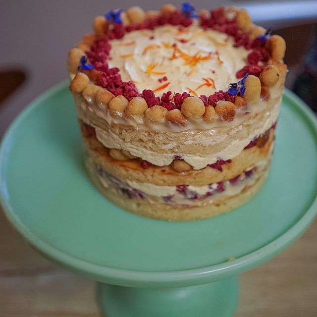 Happy birthday to the best sister in the whole world @anjalilii I was honored to make one of my recipes (inspired by @christinatosi) today: Vanilla cake with white chocolate ganache, cookie crumbs, freeze-dried raspberries, lemony cream cheese frosting to