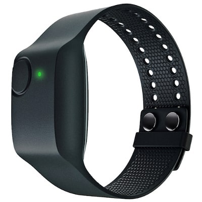 Image of the E4 wristwatch. A single user input button is available to toggle through different operation modes.