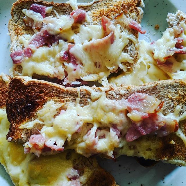 Episode 4 of "What's better than cheese? Melted cheese." The Sunday morning edition with a mix of Edam and bacon.