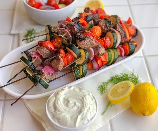 Time to break out the grill and whip up these beef skewers with homemade tzatziki sauce ???? Perfect for a BBQ!