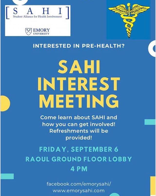 Happy FRIDAY , everyone! If you are interested in learning more about our organization the Student Alliance for Health Involvement (SAHI), please come to our interest meeting this Friday, September 6th at 4PM in the Raoul Hall Ground Floor Lobby! Also, fe
