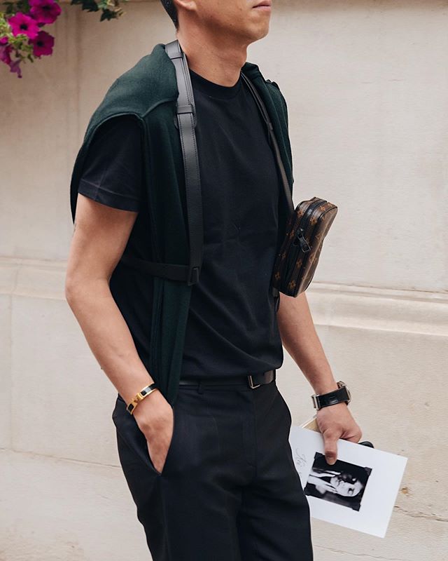 @LouisVuitton Utility Harness Bag... what do u guys think of the design? Ingenious or inept? But love the @Hermes clic clac bracelet????✌????❤️ #bags #louisvuitton #menstyle #menswear #mensfashion #londonfashionweek #streetstyle (Source: @pauseonline)