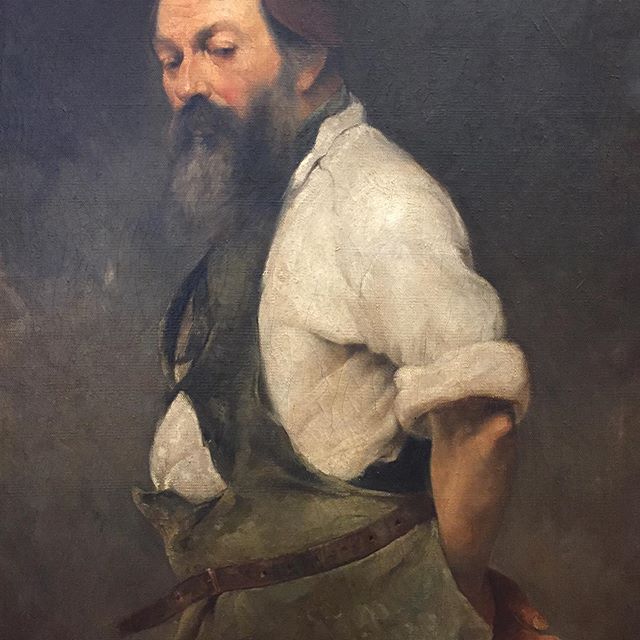 My favourite painting at the Modern Gallery: “Blacksmith” by Dragan Melkus. #art #arthistory #croatianartist #zagreb #croatia #moderngallery #painting #portrait