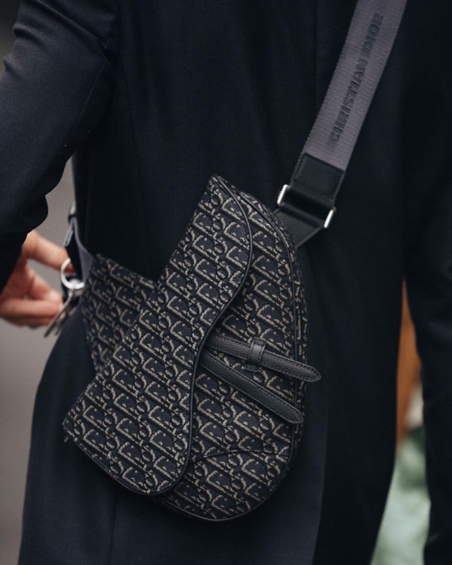 Love this grey @dior oblique saddle bag... the darker shade of the pattern looks so fab! Do you like this colour or the classic lighter shade? #bags #dior #saddlebag #parisfashionweek #streetstyle #menswear #menstyle #mensfashion (Source: @pauseonline @di