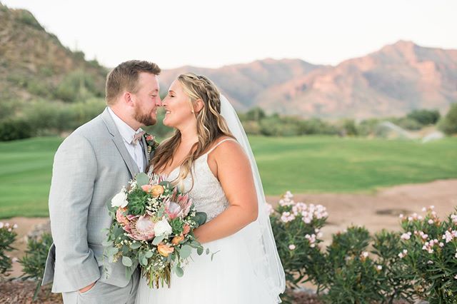 The beauty of the Superstitions Mountains was the perfect backdrop for @alex.trusty CJ’s special day! And her bouquet was quite the showstopper too! More of these two coming soon! #rdbride #trustyitslove . . . . . Venue: @weddingsofgoldcanyon Floral: @wi
